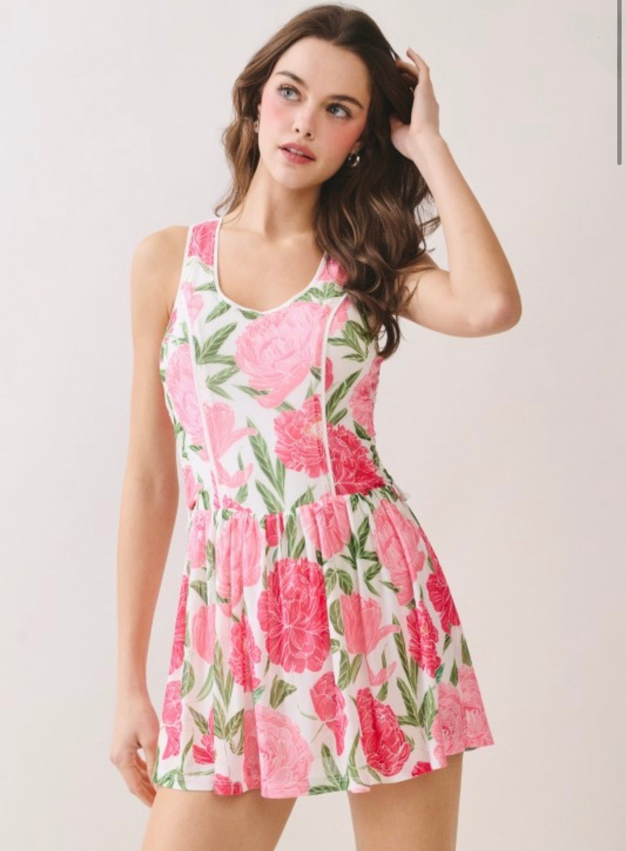 Introducing the Kelsey Floral Athleisure Dress, where floral meets fabulous! This playful pink and green beauty features a mesh skirt for that breezy vibe—perfect for yoga or just pretending to do yoga while sipping iced coffee. Slip it on, strut your stuff, and let the compliments bloom! 🌸