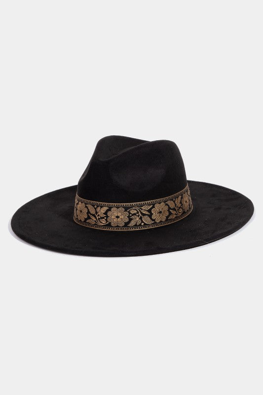 "Embrace risk with the Piper Black Flower Ribbon Fedora Hat. This bold, structured fedora boasts a sleek black color and is adorned with a daring gold ribbon bow trim. Elevate your style and stand out from the crowd with this adventurous accessory!"