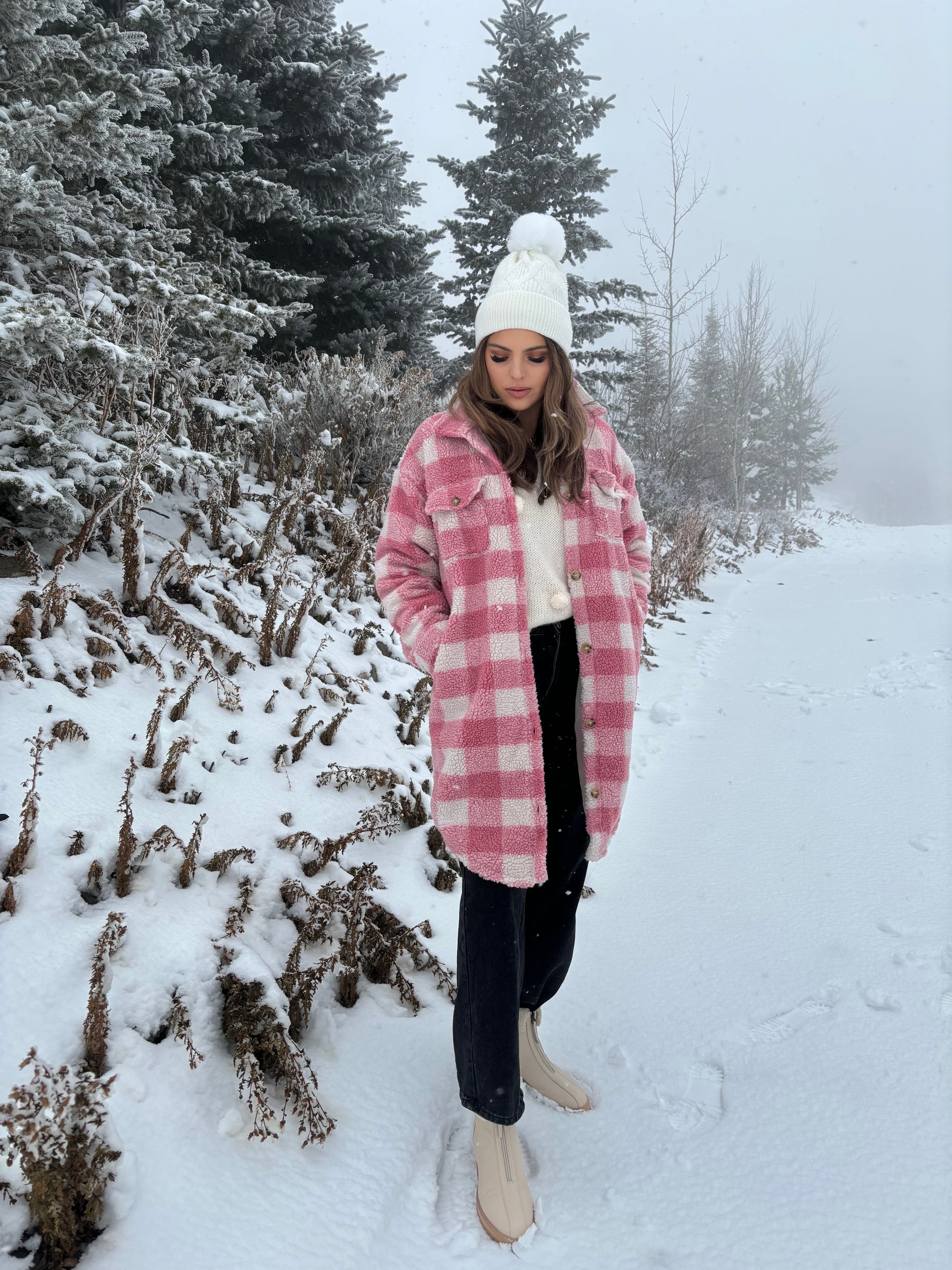 Candy Cream and Pink Buffalo Plaid Sherpa Shacket