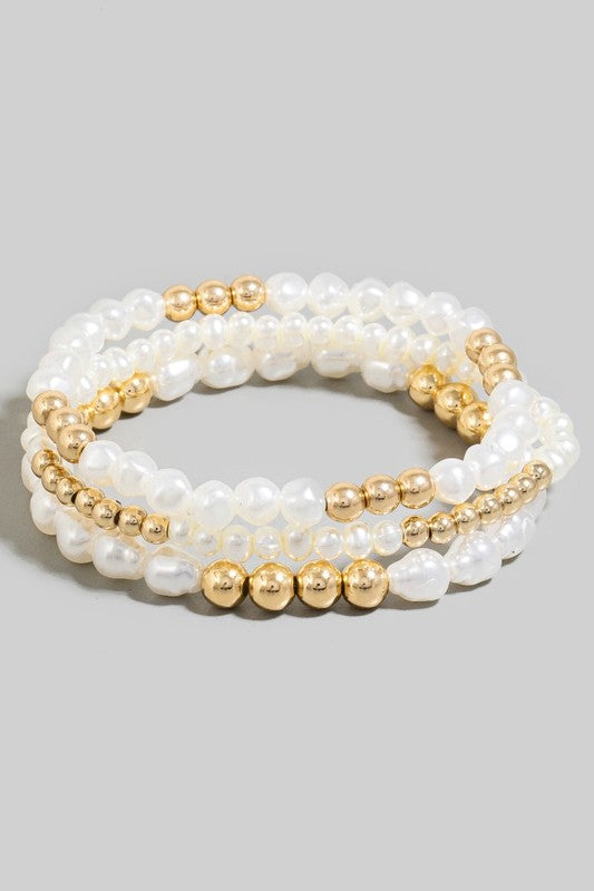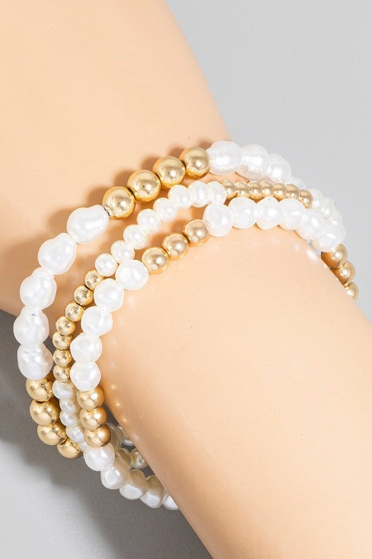 Take your wrist game to the next level with our Eva White and Gold Stackable Bracelet Set! Mix and match these stunning white and gold bracelets for endless looks. Elevate any outfit with these versatile and stylish pieces. Amp up your jewelry collection with this must-have set!