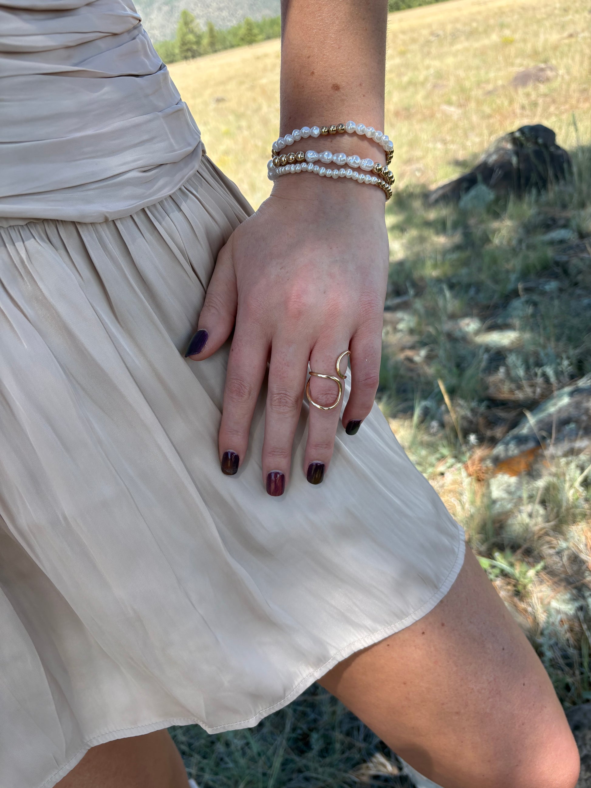 Get ready to add some unique style to your jewelry collection with the Kayleigh Dainty Abstract Gold Ring. This ring features a delicate and abstract design, crafted with a luxurious gold finish. Stand out from the crowd in the most subtle and stylish way possible.